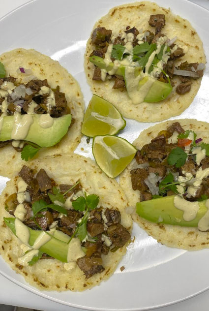 | Tacos de lengua Tortillas de maíz caseras, aguacate y cilantro (4uds) |